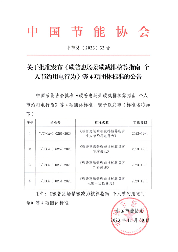 關于批準發布《碳普惠場景碳減排核算指南個人節約用電行為》等4項團體標準的公告.PDF