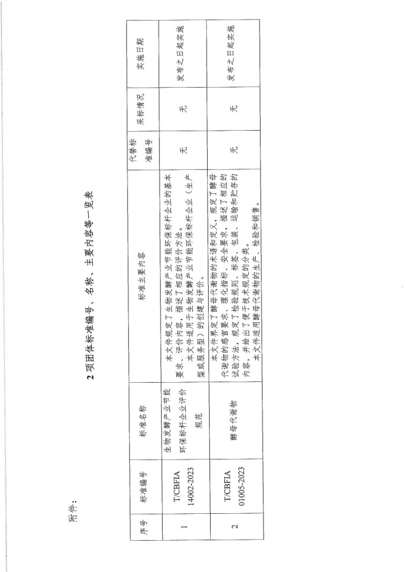 T/CBFIA 14002-2023 生物發酵產業節能環保標桿企業評價規范 T/CBFIA 01005-2023 酵母代謝物