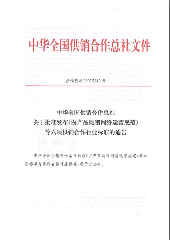 中華全國(guó)供銷合作總社批準(zhǔn)《農(nóng)產(chǎn)品購(gòu)銷網(wǎng)絡(luò)運(yùn)營(yíng)規(guī)范》等六項(xiàng)標(biāo)準(zhǔn)為供銷合作行業(yè)標(biāo)準(zhǔn),現(xiàn)予以公布。