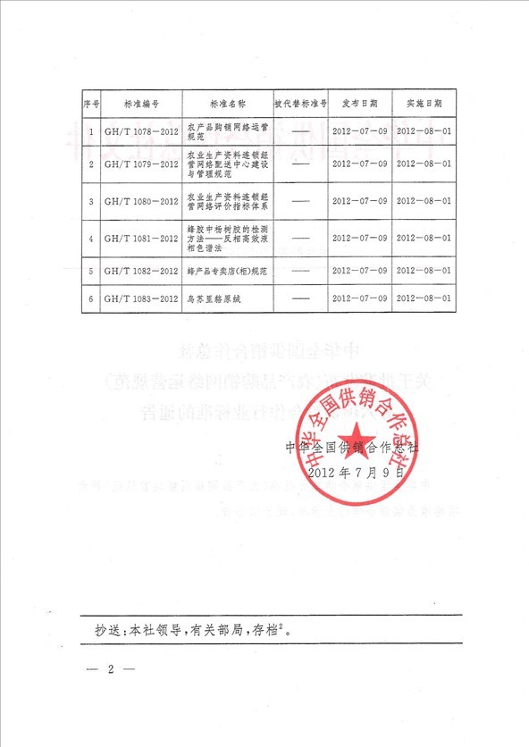 | 5 | GH/T 1082-2012 | 蜂產(chǎn)品專賣店(柜)規(guī)范 | —— | 2012-07-09 | 2012-08-01 |