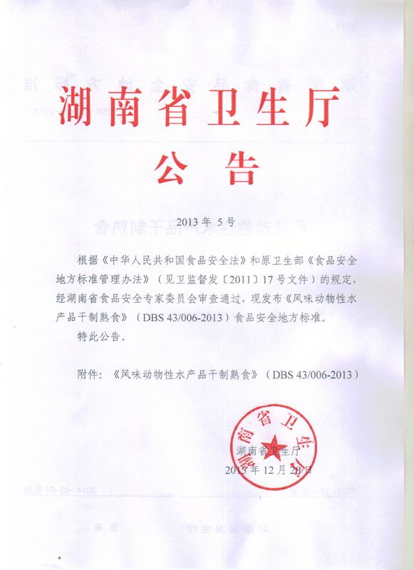 本文關鍵詞:湖南省衛生廳發布食品安全地方標準DBS43/ 006-2013 湖南省衛生廳公告 2013年5號,標準公告 本文鏈接:http://www.eriko-tarot.com/jcxm/bzgg/2025-01-24/13519.html