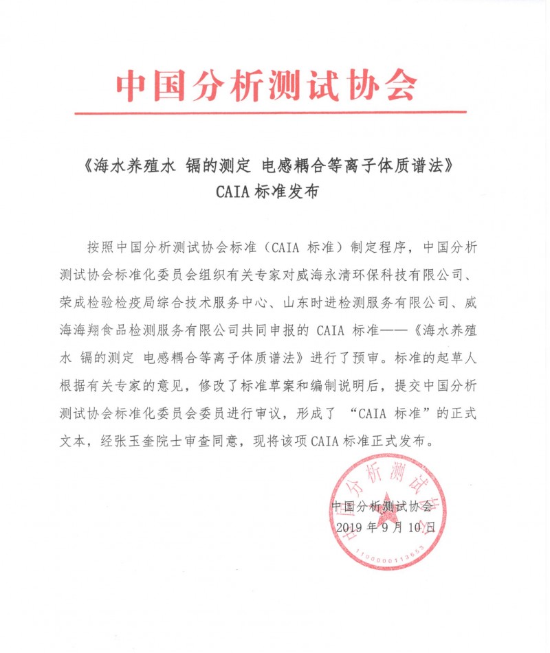 以上為中國分析測試協(xié)會關(guān)于《海水養(yǎng)殖水 鎘的測定 電感耦合等離子體質(zhì)譜法》CAIA標(biāo)準(zhǔn)的發(fā)布的檢測服務(wù)介紹,如有其他疑問可聯(lián)系在線工程師!