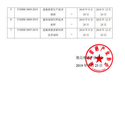 | 6 | T/HBSE 0006-2019 | 蛋雞富硒飼養技術規程 |