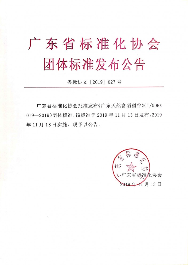 以上為關于廣東省標準化協會批準發布《廣東天然富硒稻谷》團體標準的公告(粵標協文[2019]027號)的檢測服務介紹,如有其他疑問可聯系在線工程師!