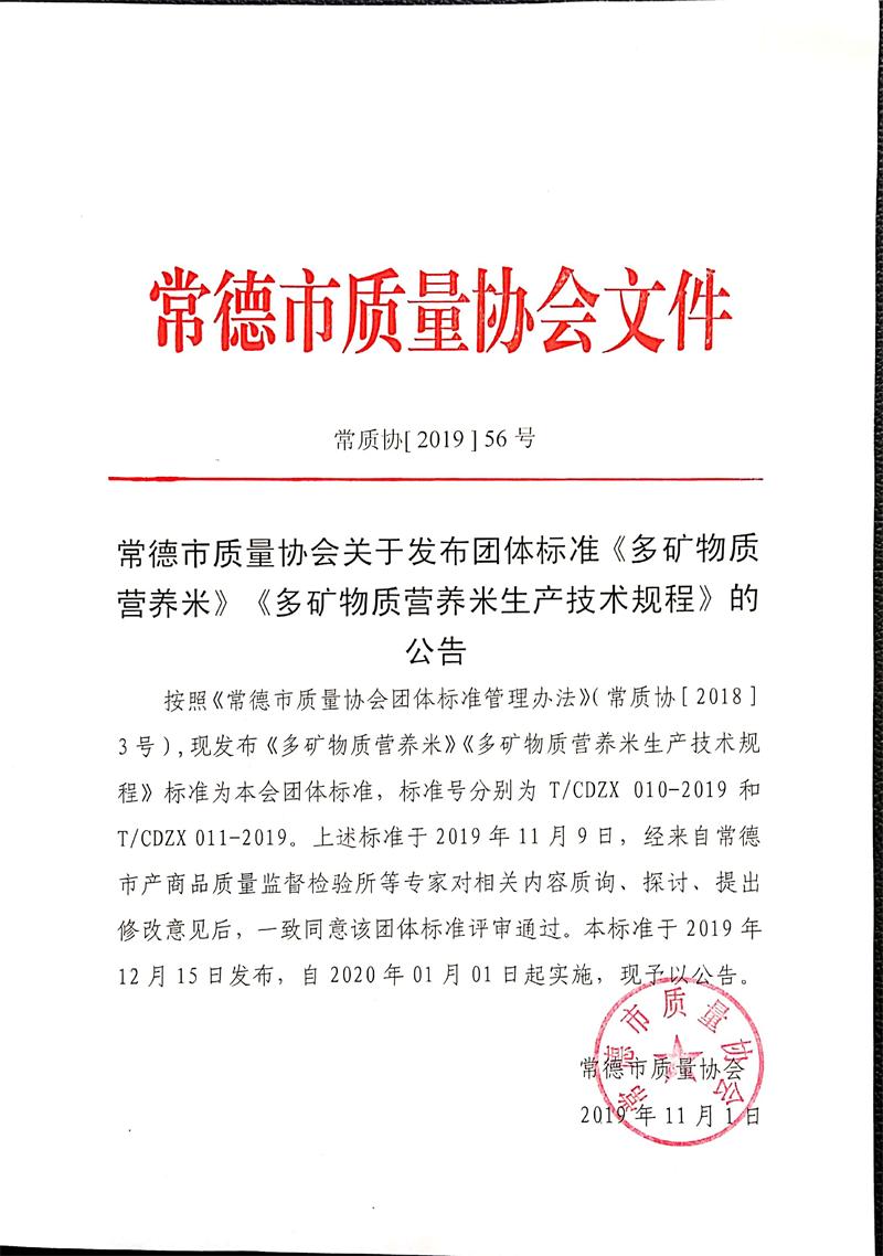 T/CDZX 010-2019《多礦物質(zhì)營養(yǎng)米》 T/CDZX 011-2019《多礦物質(zhì)營養(yǎng)米生產(chǎn)技術(shù)規(guī)程》