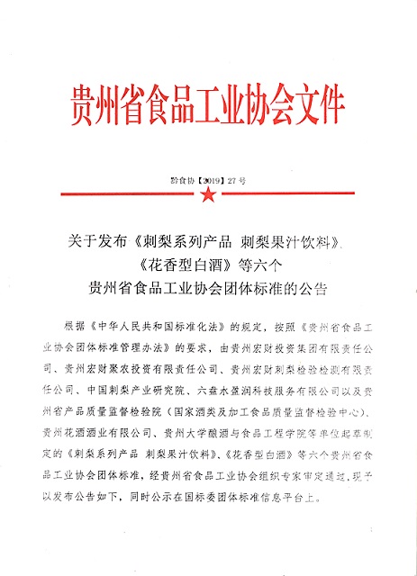 | 1 | 刺梨系列產品 刺梨果汁飲料 | T/GZSX 055.11-2019 | 2019-12-30 | 2020-01-10 |