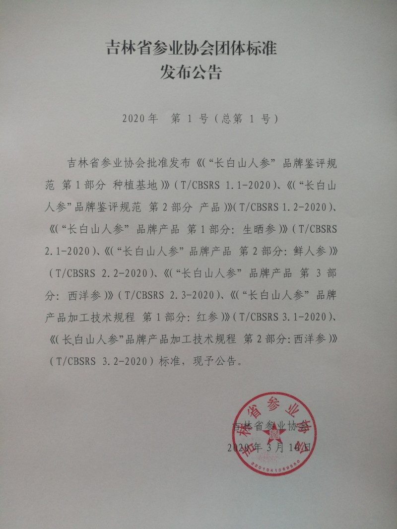 以上為吉林省參業協會批準發布《(“長白山人參”品牌產品 第3部分:西洋參)》等團體標準發布公告(2020年第1號)的檢測服務介紹,如有其他疑問可聯系在線工程師!