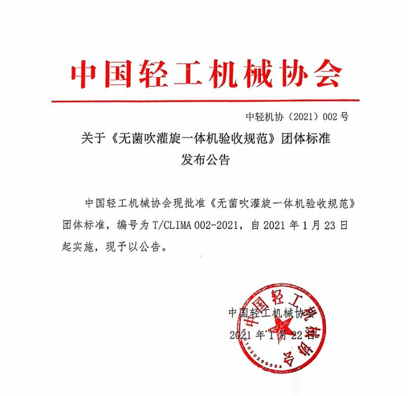 以上為中國輕工機械協會關于《無菌吹灌旋一體機驗收規范》團體標準發布公告(中輕機協(2021)002 號)的檢測服務介紹,如有其他疑問可聯系在線工程師!