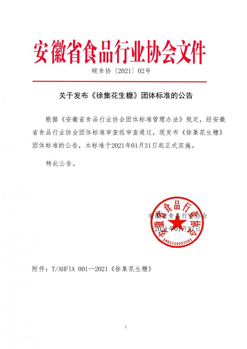 以上為安徽省食品行業協會關于發布《徐集花生糖》團體標準的公告(皖食協〔2021)02號)的檢測服務介紹,如有其他疑問可聯系在線工程師!