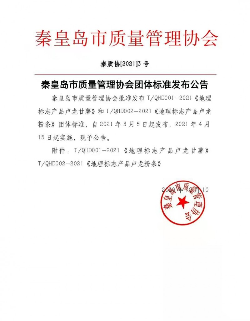 以上為秦皇島市質量管理協會關于《地理標志產品盧龍甘薯》和《地理標志產品盧龍粉條》兩項團體標準的發布公告(秦質協[2021]3號)的檢測服務介紹,如有其他疑問可聯系在線工程師!