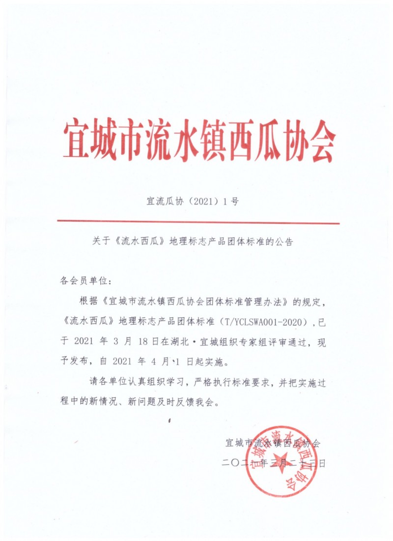 以上為宜城市流水鎮西瓜協會關于地理標志產品《流水西瓜》團體標準的公告(宜流瓜協(2021)1號)的檢測服務介紹,如有其他疑問可聯系在線工程師!