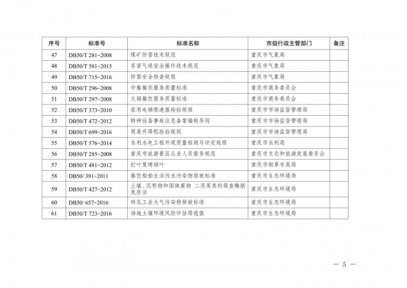 | 31 | DB50/ 391-2011 | 餐飲船舶生活污水污染物排放標準 |