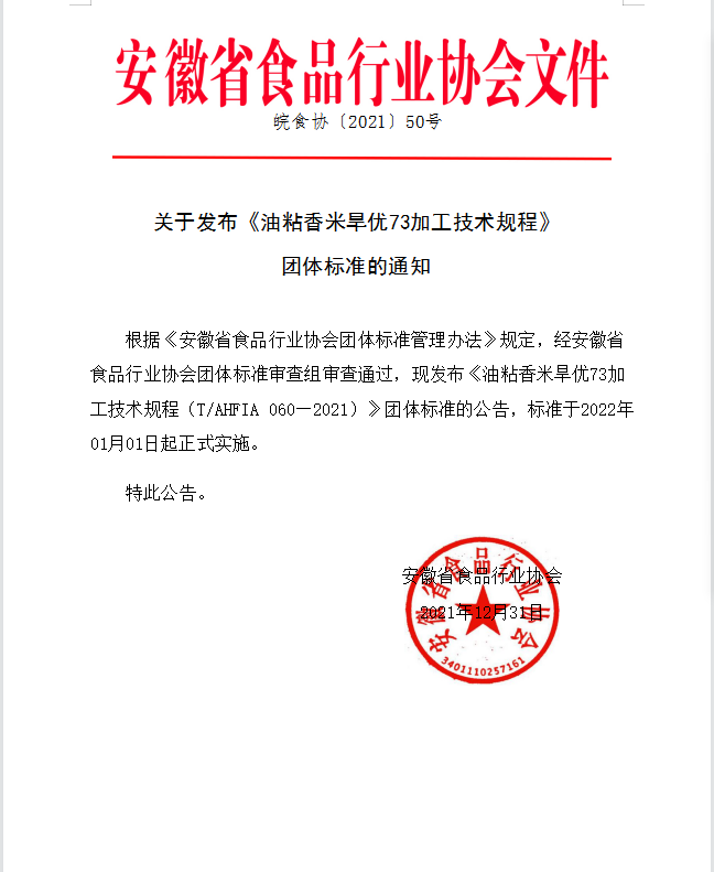 以上為安徽省食品行業(yè)協(xié)會關(guān)于發(fā)布《油粘香米旱優(yōu)73加工技術(shù)規(guī)程》團(tuán)體標(biāo)準(zhǔn)的通知(皖食協(xié)〔2021〕50號)的檢測服務(wù)介紹,如有其他疑問可聯(lián)系在線工程師!