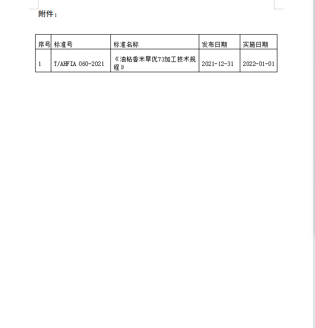 T/AHFIA 060-2021 油粘香米旱優(yōu)73加工技術(shù)規(guī)程