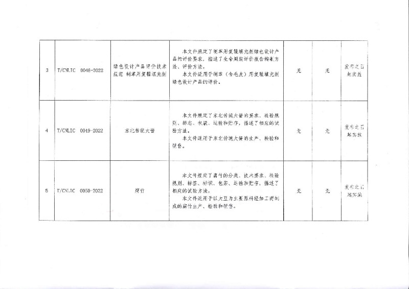 T/CNLIC 0046-2022 綠色設計產品評價技術規范 軟水機 T/CNLIC 0047-2022 綠色設計產品評價技術規范 凈化加熱一體式直飲機 T/CNLIC 0049-2022 東北傳統六醬 T/CNLIC 0050-2022 腐竹 T/CNLIC 0052-2022 綠色設計產品評價技術規范 聚丙烯壓延薄膜與片材 T/CNLIC 0056-2022 家用電器行業綠色工廠評價導則