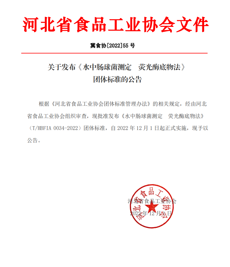 以上為河北省食品工業(yè)協(xié)會(huì)關(guān)于發(fā)布《水中腸球菌測(cè)定 熒光酶底物法》團(tuán)體標(biāo)準(zhǔn)的公告(冀食協(xié)[2022]55號(hào))的檢測(cè)服務(wù)介紹,如有其他疑問可聯(lián)系在線工程師!