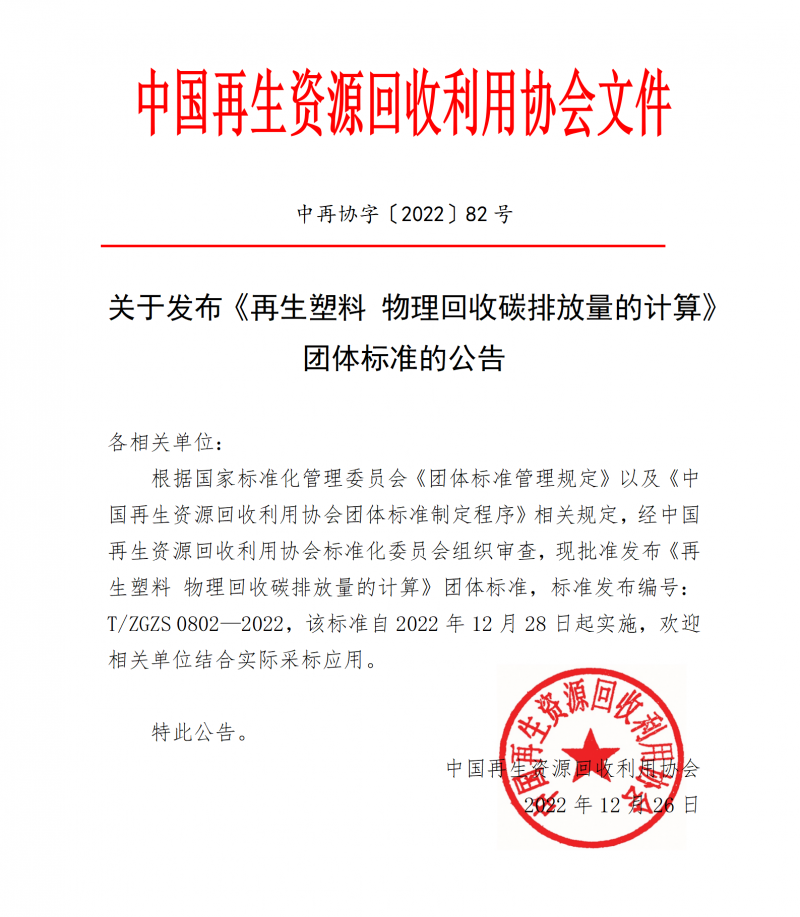 以上為中國再生資源回收利用協會關于發布《再生塑料物理回收碳排放量的計算》團體標準的公告(中再協字〔2022〕82號)的檢測服務介紹,如有其他疑問可聯系在線工程師!