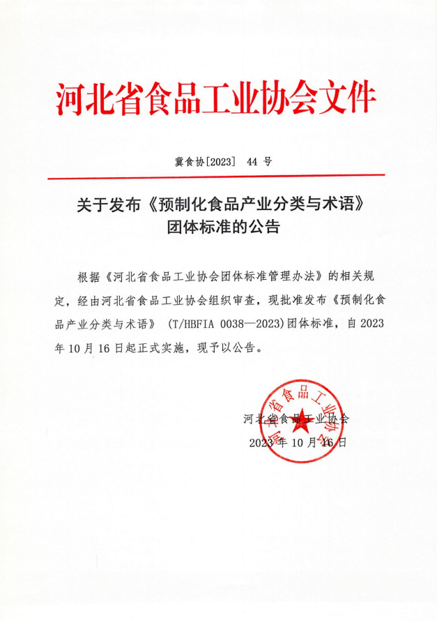以上為河北省食品工業(yè)協(xié)會關于發(fā)布《預制化食品產(chǎn)業(yè)分類與術(shù)語》 團體標準的公告(冀食協(xié)[2023]44號)的檢測服務介紹,如有其他疑問可聯(lián)系在線工程師!